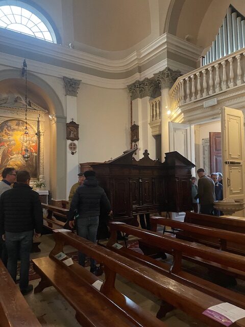 Ha avuto luogo ieri la cerimonia di consegna del mobile della Sacrestia restaurato dai volontari del corso di restauro del legno della SOMSI di <Lestans.