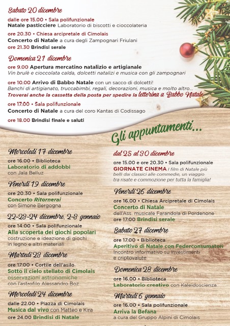 La magia del Natale a Cimolais.. Eventi per tutte le età
