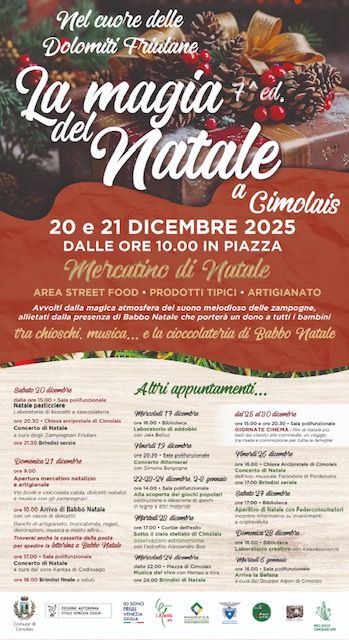 Moltissimi gli eventi della Magia del Natale cimoliano, organizzato dal Comune di Cimolais in collaborazione con le Associazioni locali