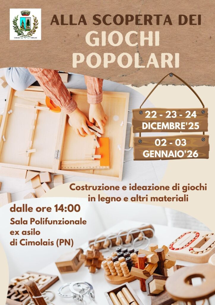 Verrà realizzato nella sala polifunzionale il laboratorio per giochi popolari organizzato dal Comune di Cimolais