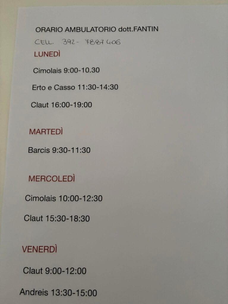 Nuovi orai ambulatorio medico dott. Fantin da gennaio 2026